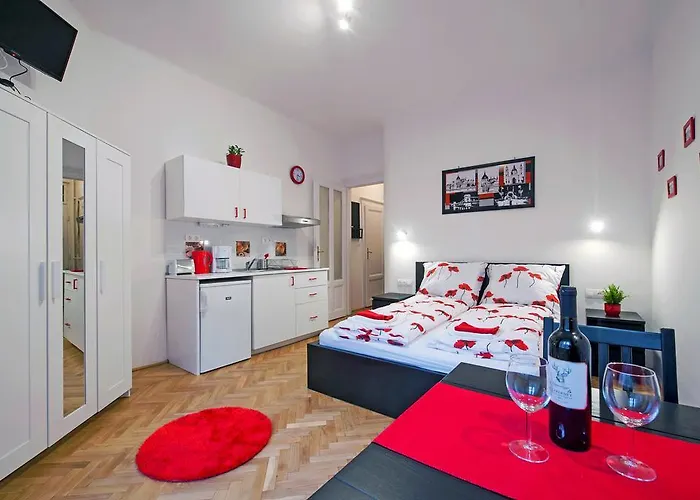 Ten apartament jest wyposażony w kuchnię, gdzie goście mogą przyrządzać własne posiłki. Obiekt noclegowy został zaprojektowany z myślą o wygodzie i relaksie Gości, a jego wyposażenie obejmuje urządzenie do parzenia kawy/herbaty. W odległości maksymalnie 5 min piechotą znajduje się restauracja Sir Lancelot Knights' Restaurant, serwująca dania kuchni wschodnioeuropejskiej. Do przystanku autobusowego Ferdinand hid idzie się spokojnym krokiem zaledwie o krok.